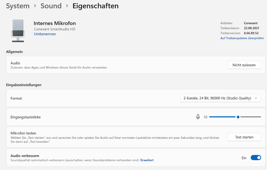 - Schalten Sie den Schalter im unteren Punkt „Audio verbessern“ auf „Ein“