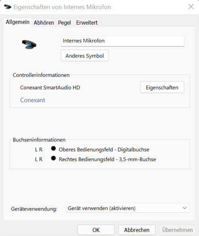 - Wählen Sie den Punkt Eingabe > „internes Mikrofon“