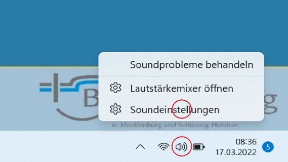 - wählen Sie mit einem Linksklick Soundeinstellungen