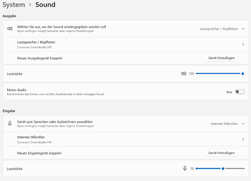 - Wählen Sie den Punkt Eingabe > „internes Mikrofon“